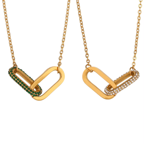 חם מוכר פשוט זהב 18K מצופה נירוסטה לב ירוק שרשרת תליון זירקון