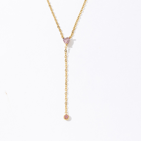 טרנדי פשוט זהב 18k מצופה זהב נירוסטה ורוד לב זירקון שרשרת תליון