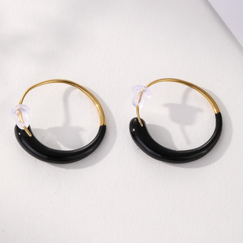 Hipoalerjenik 18k altın kaplama kadın kararmaz ücretsiz Huggie Hoop paslanmaz çelik siyah emaye bildirimi küpe